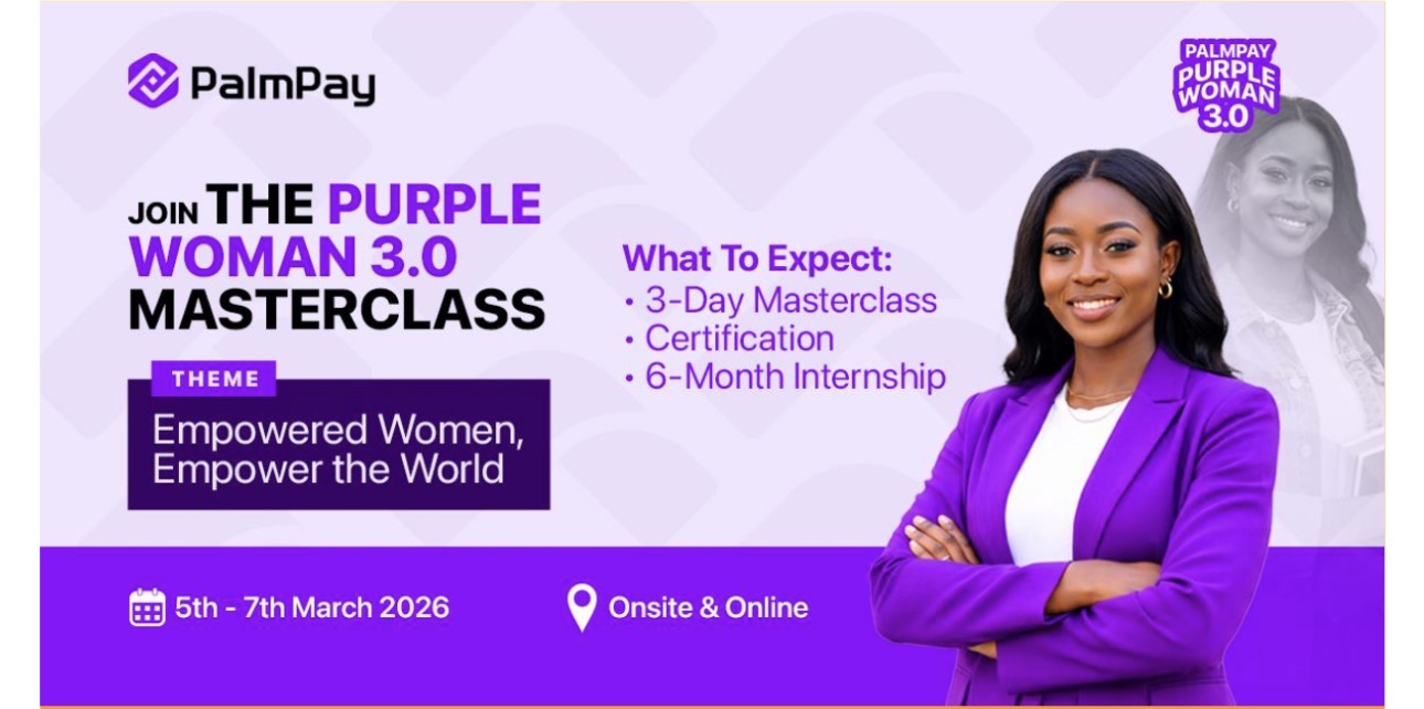 The PalmPay Purple Woman 3.0 is a 3-Day Digital Financial & Technology Masterclass created to bridge the gender gap in tech. The program is designed to equip women with practical, job ready skills while also providing job opportunities for career growth.
