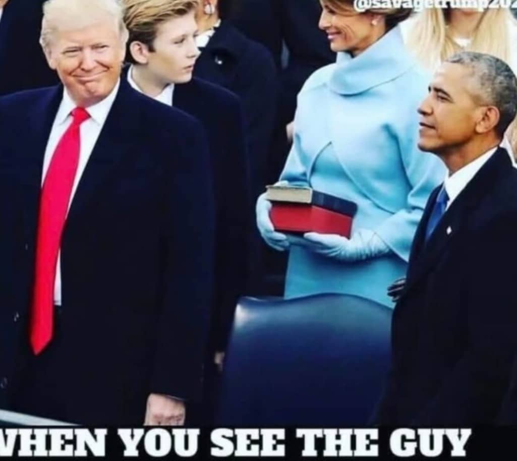 The meme featured a photo of the president-elect smirking at Obama during his 2017 inauguration, along with the caption: “When you see the guy who said ‘you’ll never be president’ at your inauguration.”